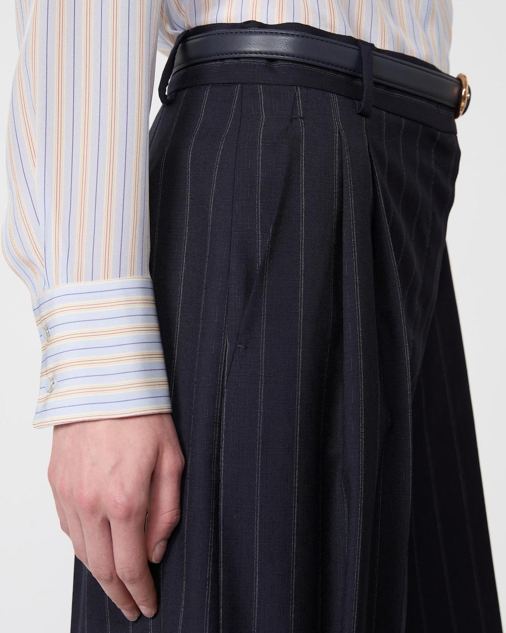 Composição: tecido: 100% lã virgem; forro: 70% acetato, 30% poliéster; com cinto em poliéster com revestimento em poliuretano.