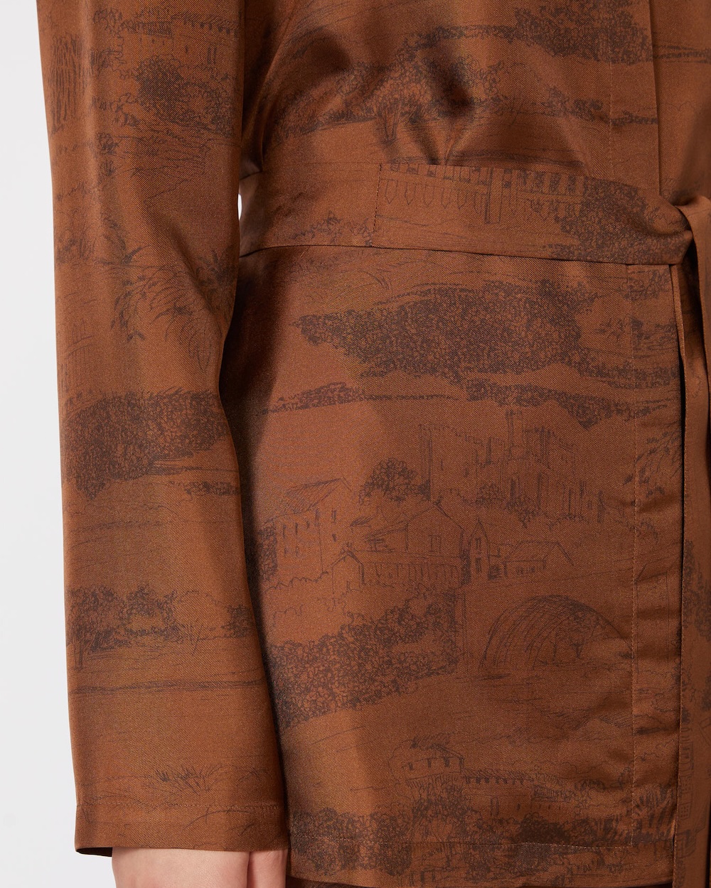 Casaco estilo pijama com gola cubana e cinto a condizer.