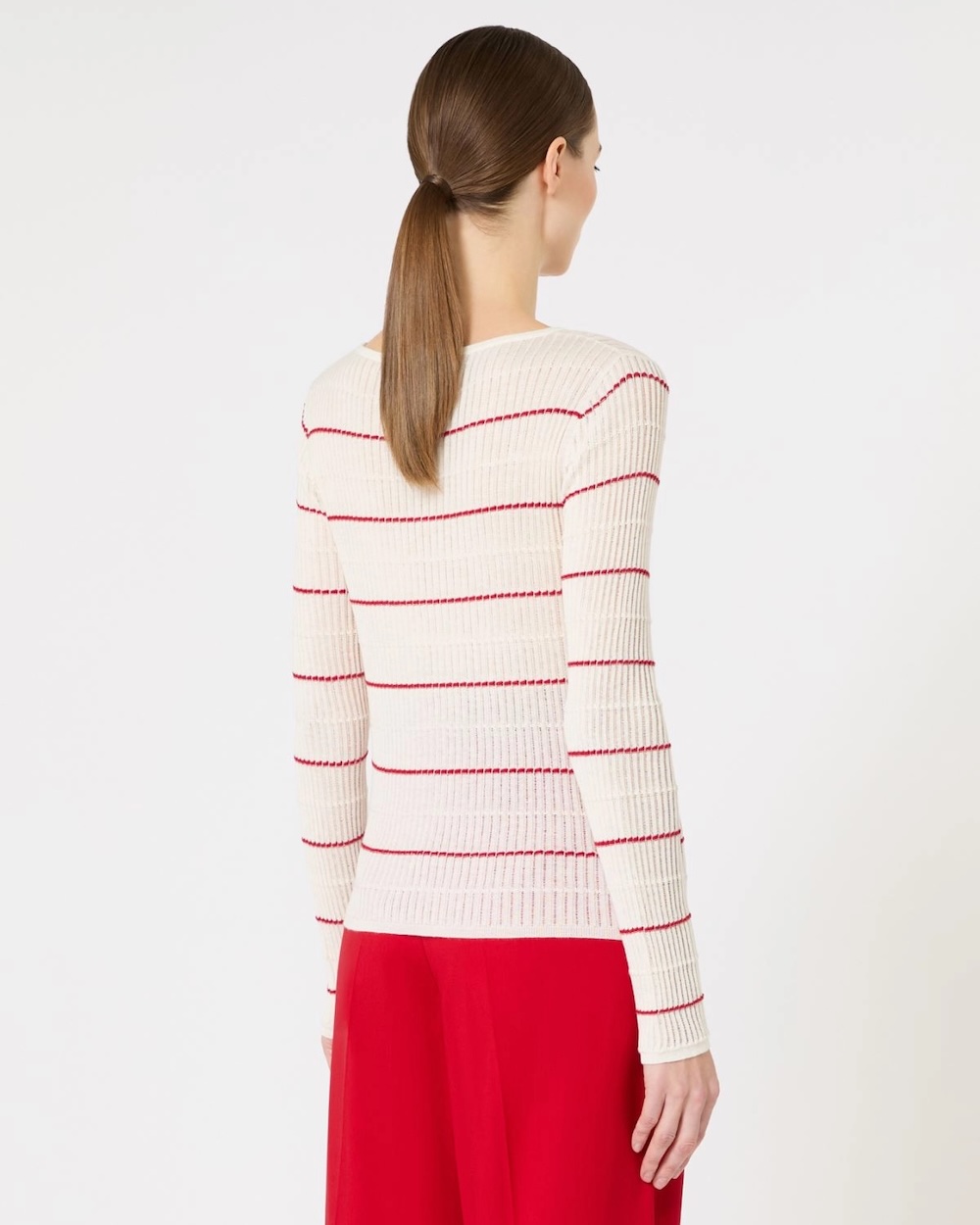 Camisola de malha canelada lisa com corte justo e detalhes vazados.