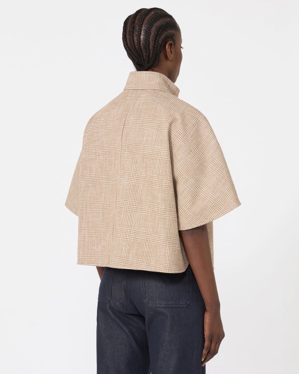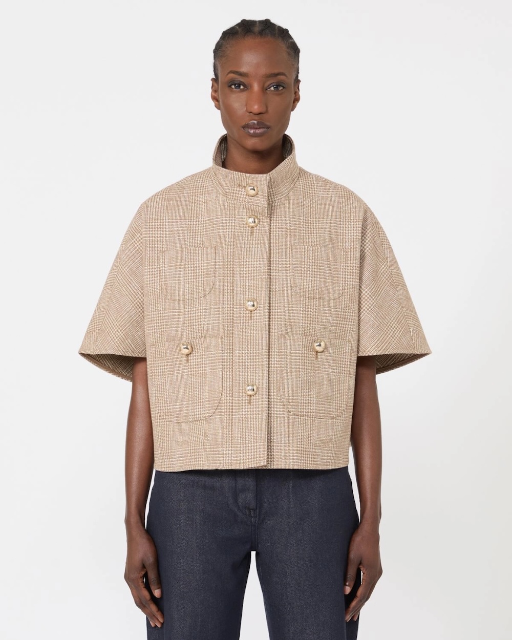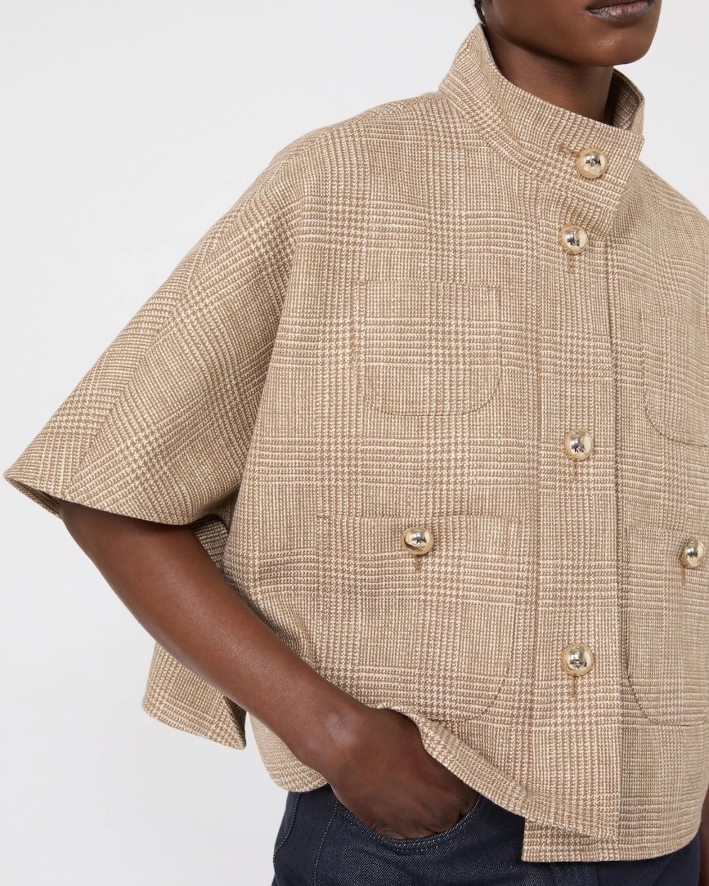 - Capa em tecido de algodão mouliné puro com padrão xadrez Glen.