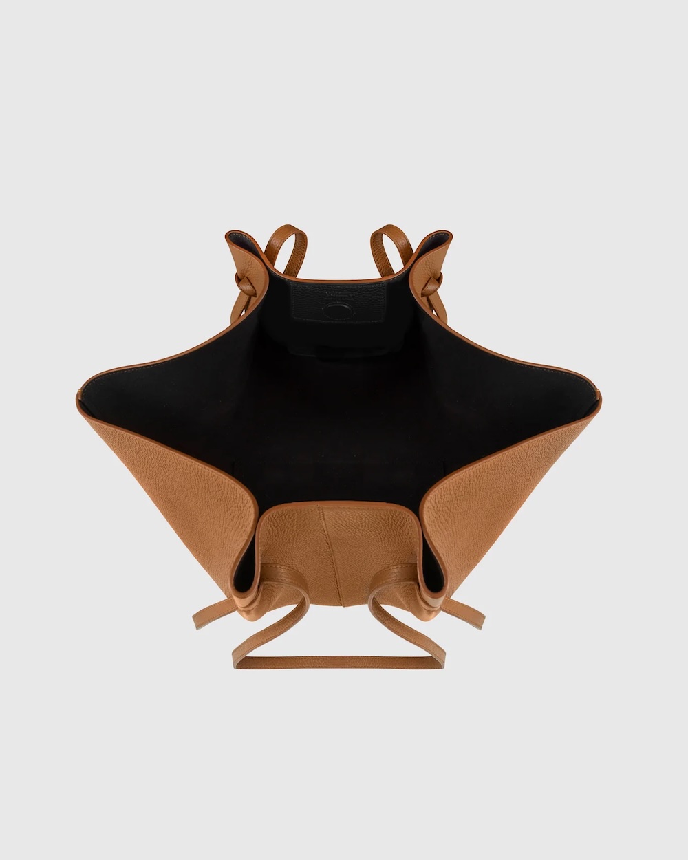 A mala Large Mochi em pele granulada cor avelã oferece um tom quente e convidativo. Elegante e espaçosa, é perfeita para transportar os seus essenciais, acrescentando um toque suave e luxuoso ao seu look. Feita à mão com os mais altos padrões de qualidade por artesãos em Espanha. Comporta todos os essenciais do dia a dia, incluindo portáteis até 13”. Alça ajustável – o nó característico pode ser afrouxado para estender a alça e fixá-la no comprimento desejado. Fecho magnético.