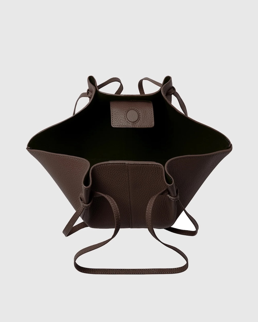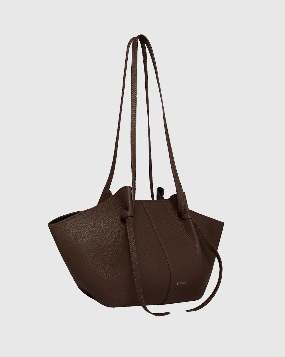 A Mochi é a nossa tote de eleição para o dia a dia — uma peça sofisticada que combina funcionalidade e design escultural. Apresenta as curvas orgânicas, pregas e o nó característico da Yuzefi, sendo confecionada em luxuoso couro italiano pebble grained na cor Espresso.