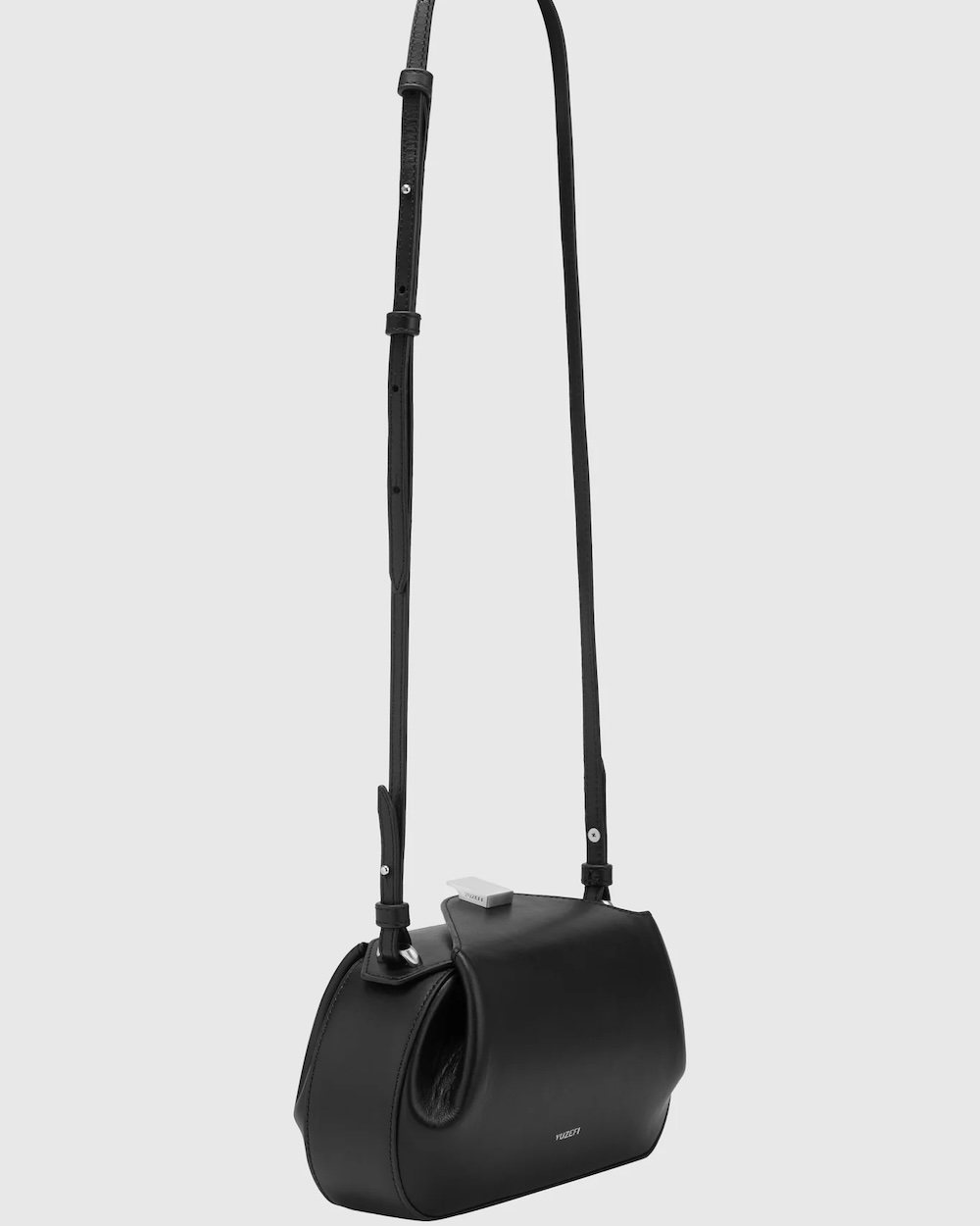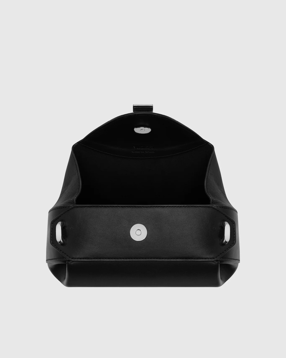 A mini clutch Oyster é confecionada em luxuoso couro italiano preto liso, com detalhes em metal prateado, e pode ser usada com uma alça de corrente dourada ou uma alça de couro a tiracolo. Feita à mão com os mais altos padrões de qualidade por artesãos em Espanha. Comporta todos os essenciais do dia-a-dia: telemóvel, chaves, carteira, etc. Alça de couro ajustável e alça de corrente removível. Fecho: Magnético. Detalhes em metal prateado.