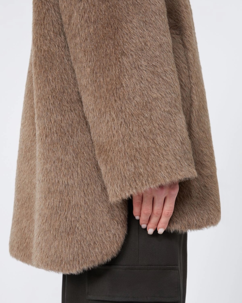 Composição: Exterior: 59% alpaca, 38% lã virgem, 3% caxemira; Interior: 100% poliamida; Enchimento: penugem virgem de ganso (Contém partes não têxteis de origem animal).