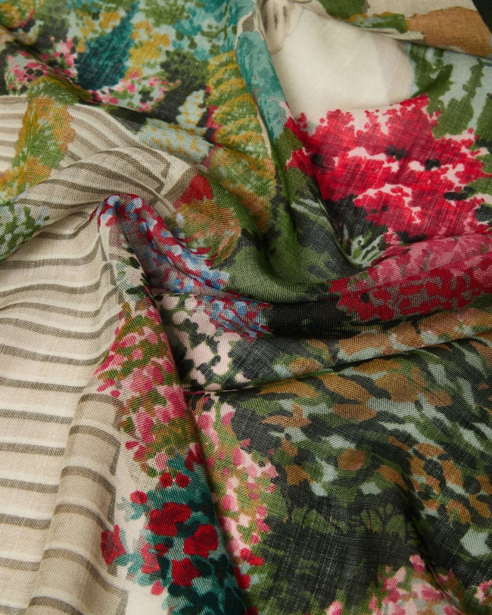 Lenço oversized com estampado da coleção por toda a peça.