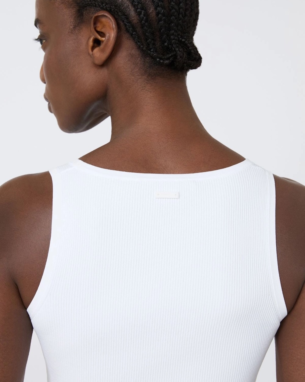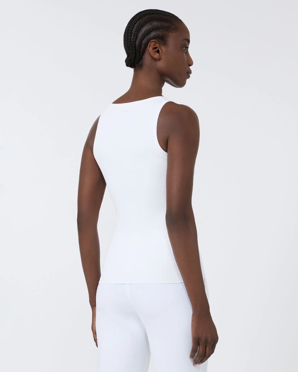 Blusa sem mangas com padrão canelado que realça a silhueta.