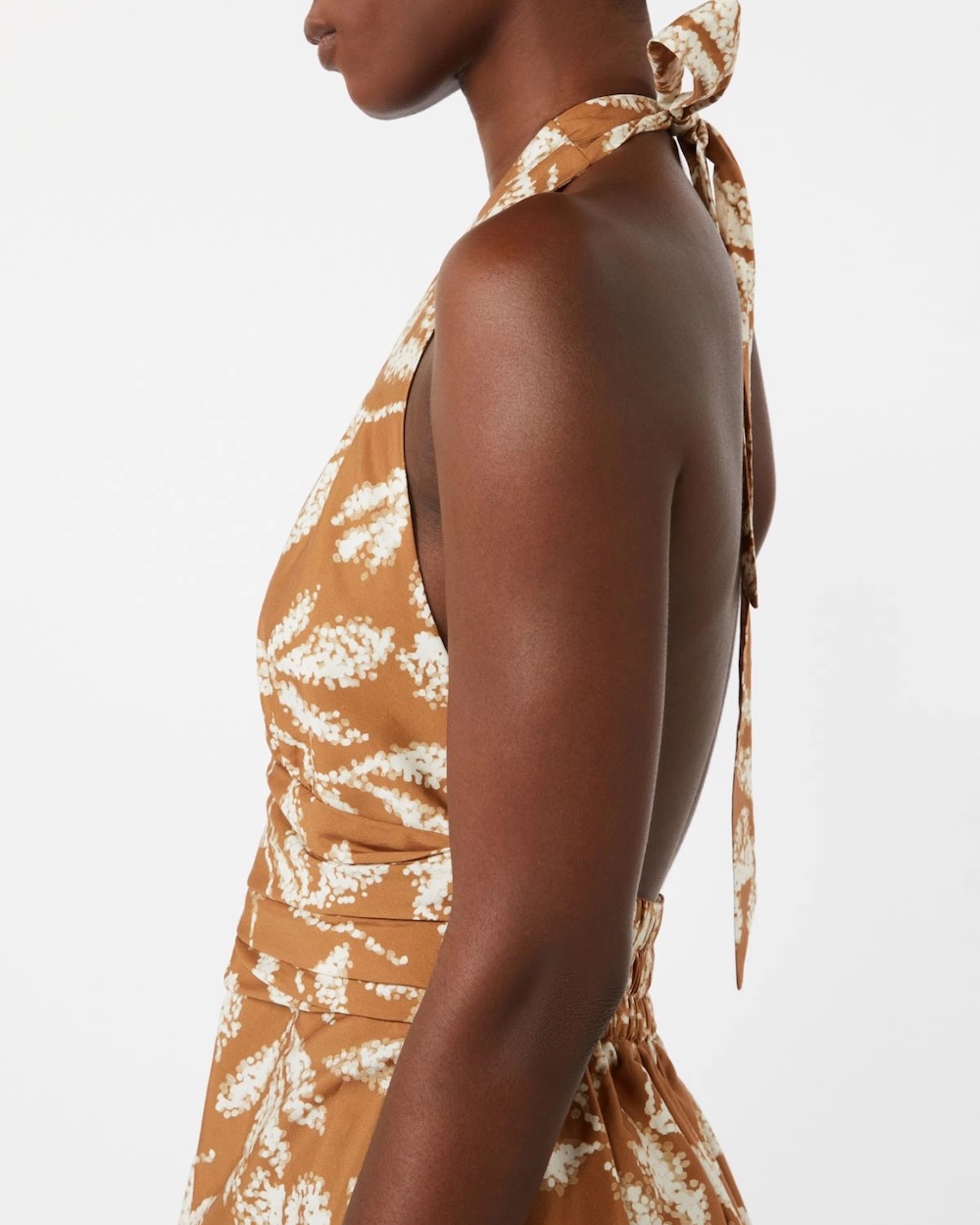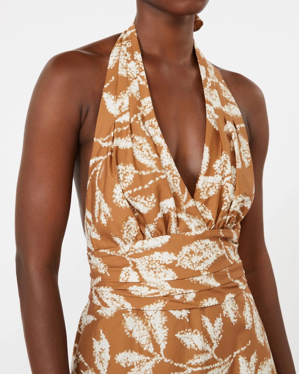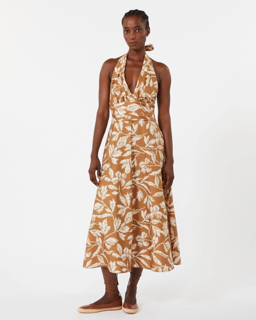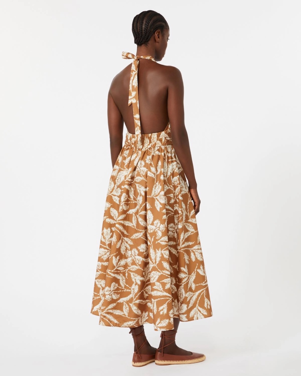 Vestido comprido sem mangas com estampado exclusivo.